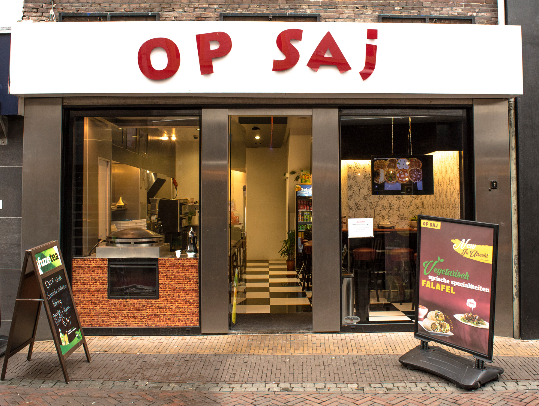 Onze gerechten ( Falafel , Manakeesh , Saj ) worden vers en met heel veel gronten en salades beried, authentiek zoals in Syrie .